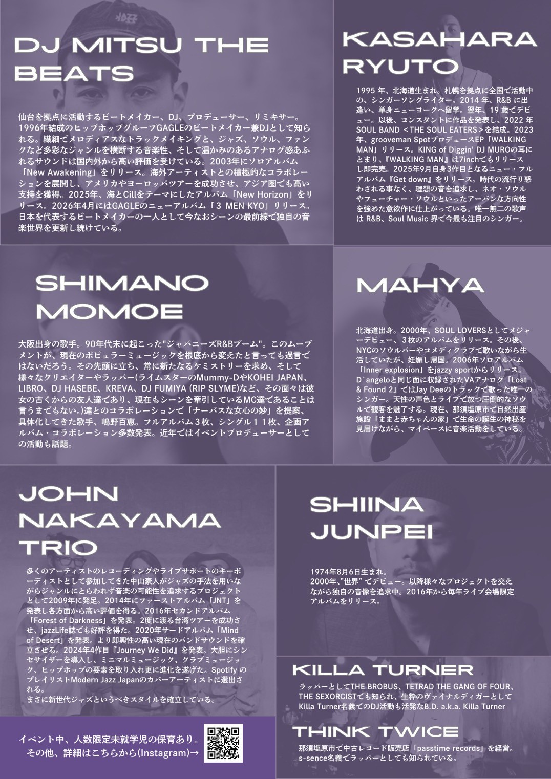 DJ Mitsu the Beats・嶋野百恵・椎名純平・笠原瑠斗・John Nakayama Trio・Mahya