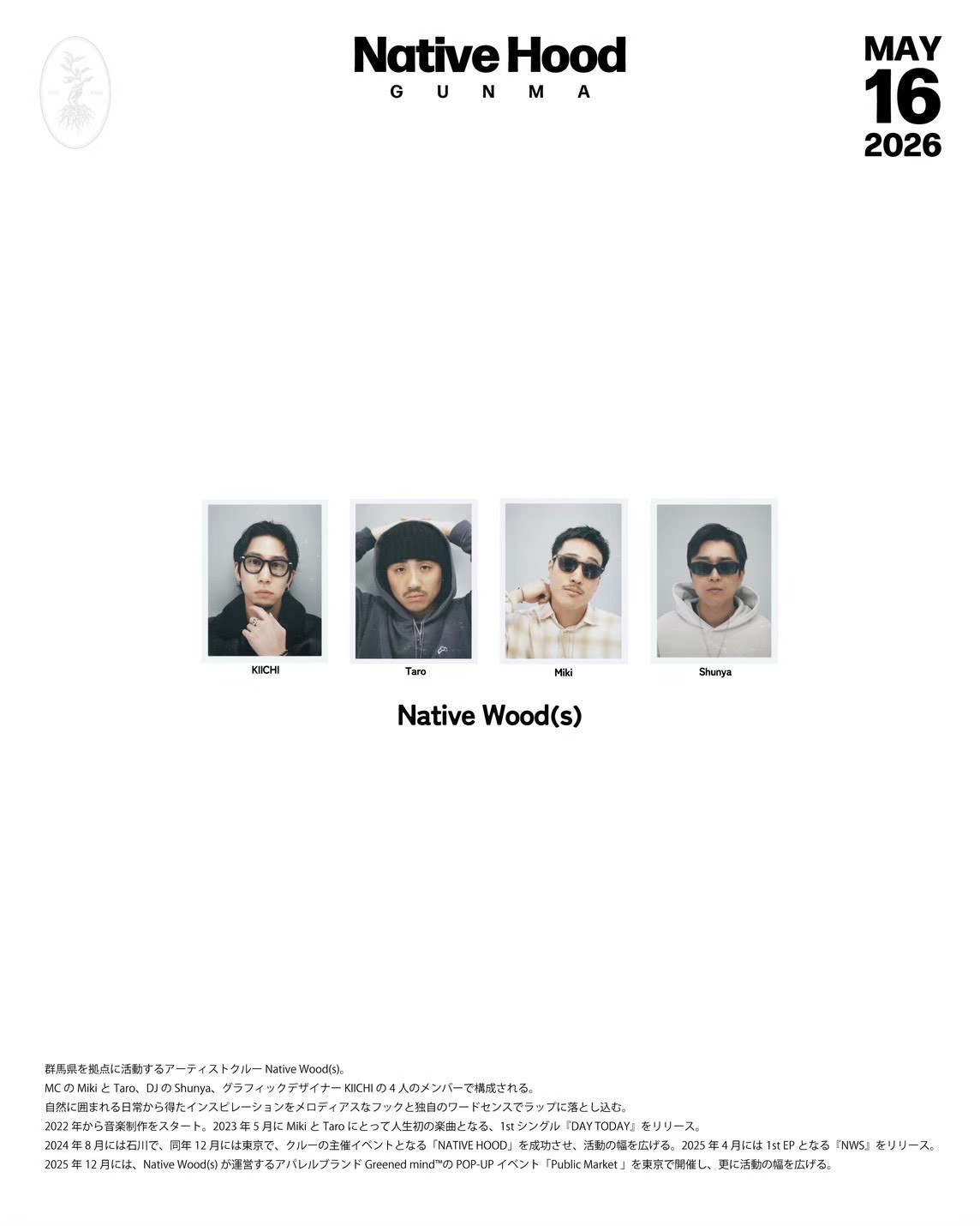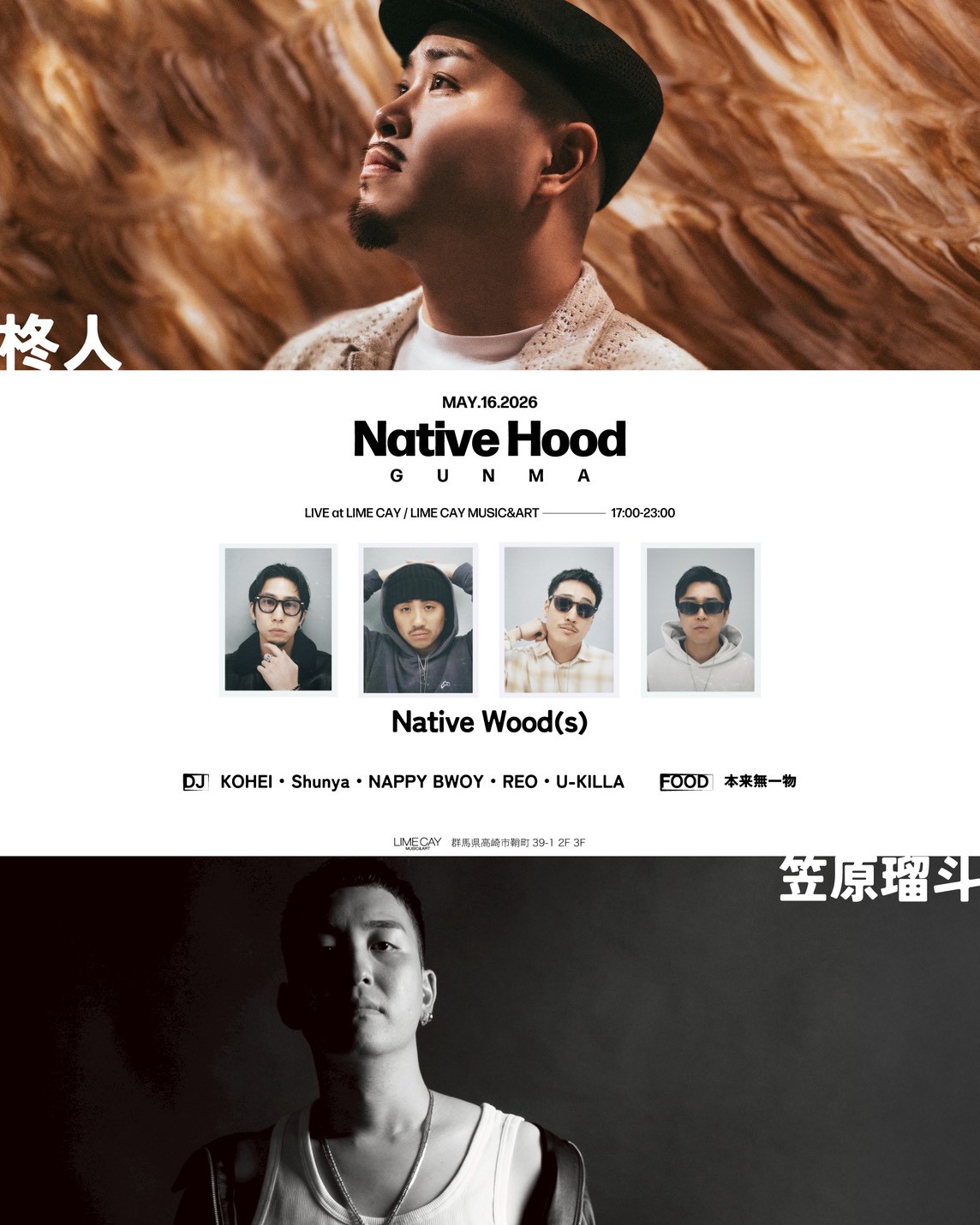 群馬県を拠点に活動するNative Wood(s)が主催するイベント「Native Hood」が高崎市にて開催決定。