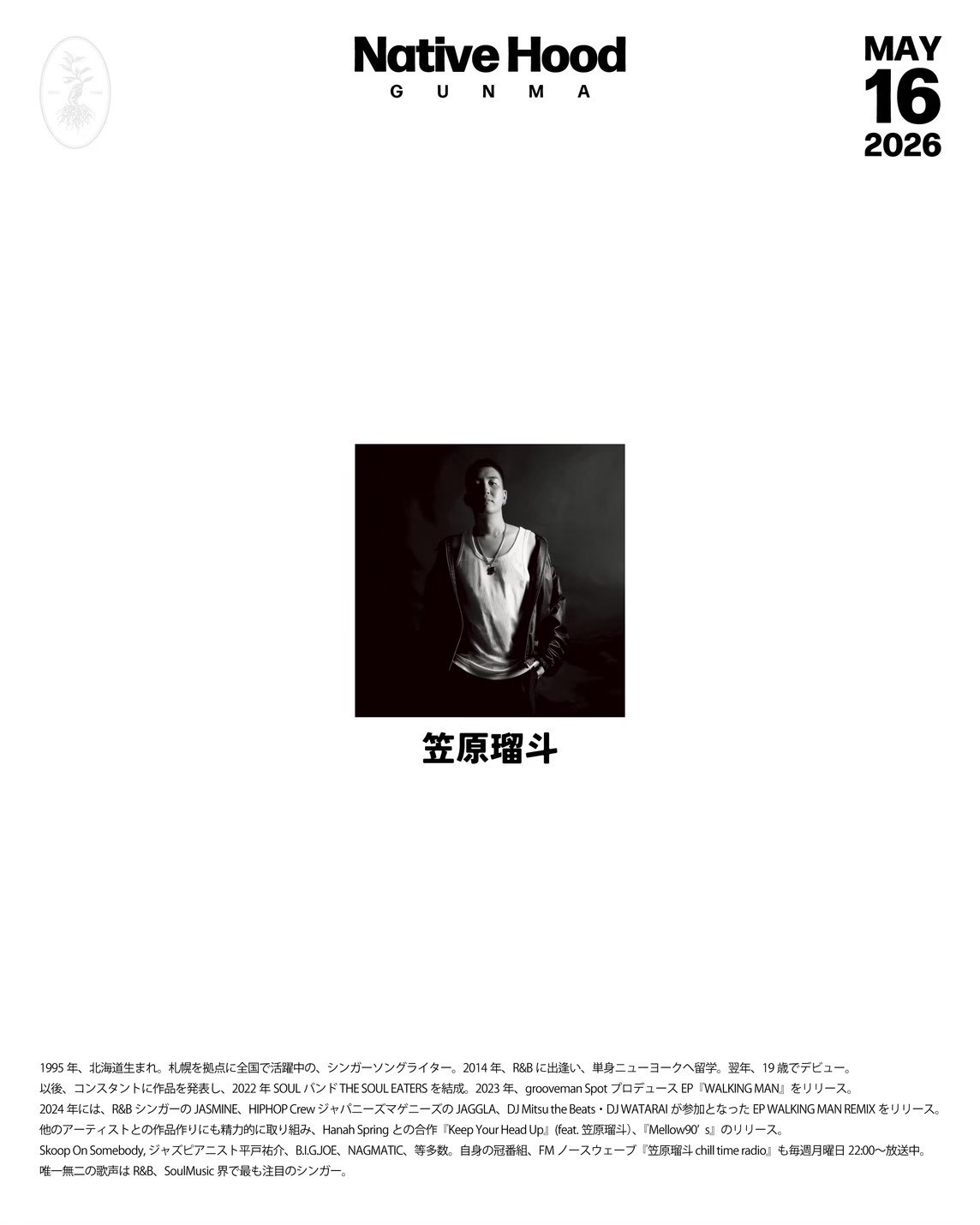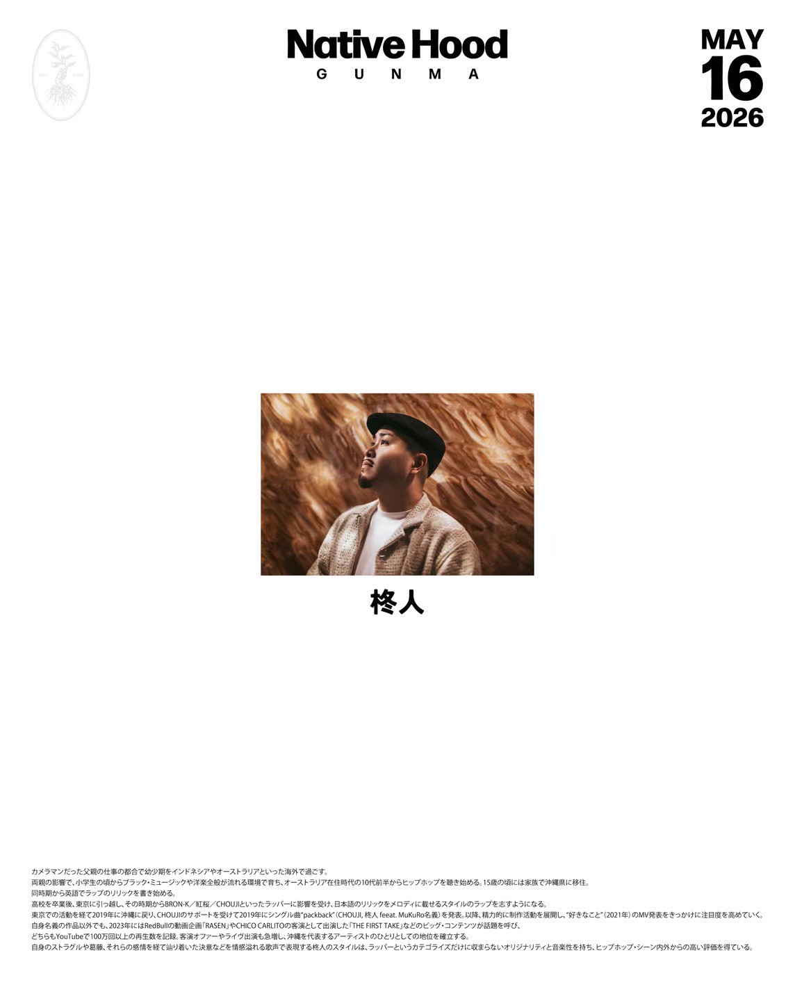 今回、高崎市で初めて開催される「Native Hood」には、沖縄出身のラッパー柊人と北海道出身のR&Bシンガー笠原瑠斗をスペシャルゲストに迎え、